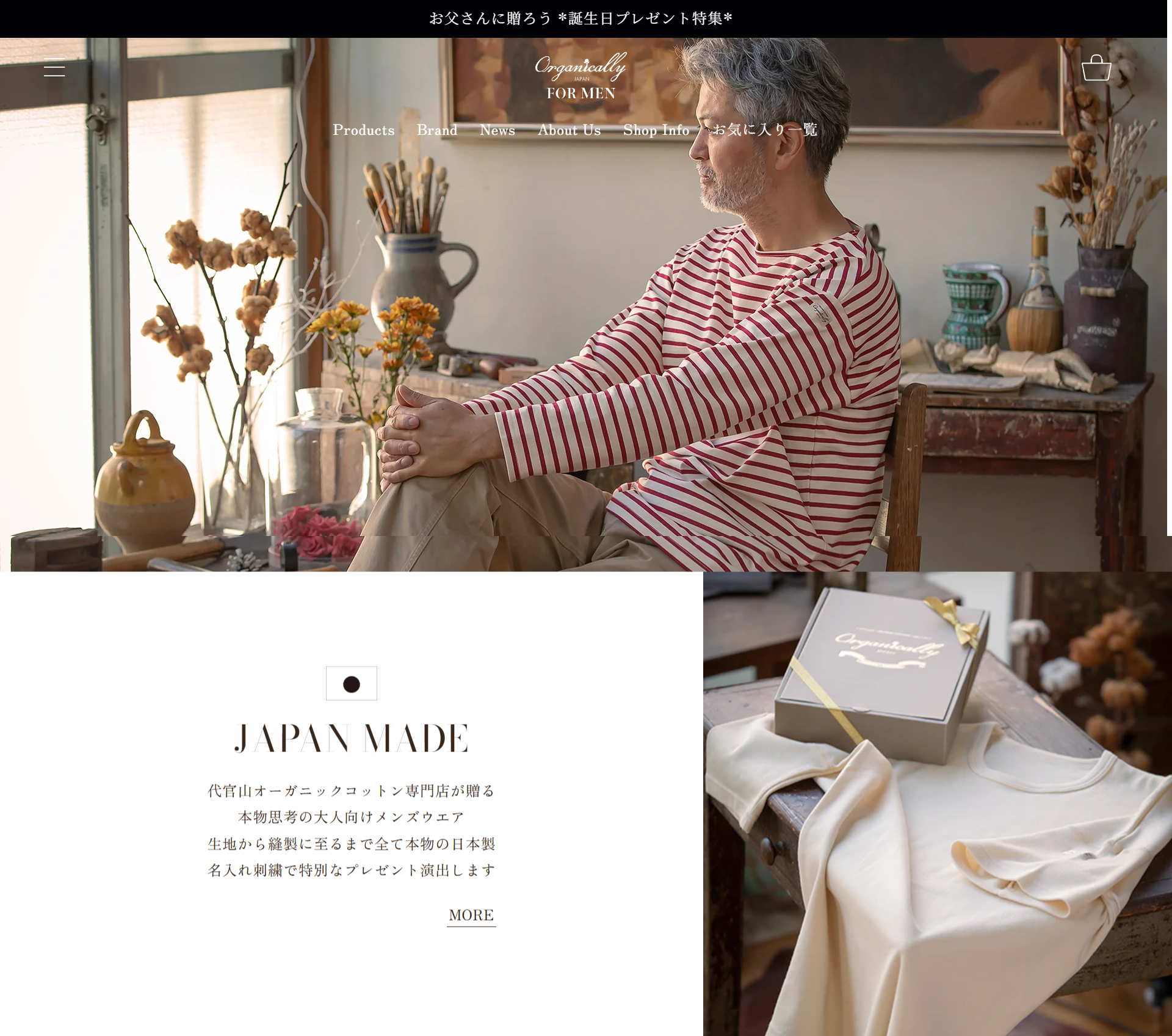 日本製オーガニックコットンにこだわったメンズブランドです。